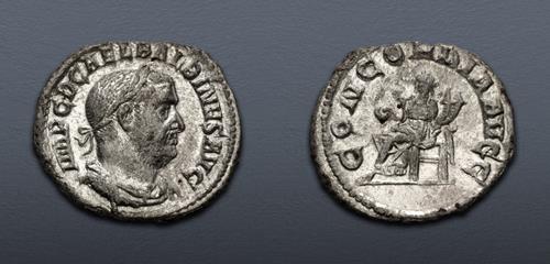 Electronic Auction 524 Lot: 591. Balbinus. AD 238. AR Denarius (19mm, 2.94 g, 12h). Rome mint. 2nd emission. VF.
