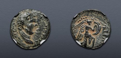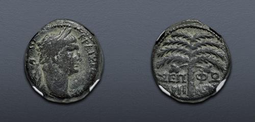 Electronic Auction 524 Lot: 379. JUDAEA, Sepphoris (Diocaesarea). Trajan. AD 98-117. Æ (24mm, 12h(. In NGC encapsulation 6158319-011, graded Ch F.
