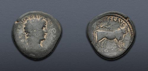 Electronic Auction 524 Lot: 358. SELEUCIS and PIERIA, Antioch. Domitian. As Caesar, AD 69-81. Æ Semis (21.5mm, 8.48 g, 12h). Struck under Vespasian, AD 69-79. Good VF.