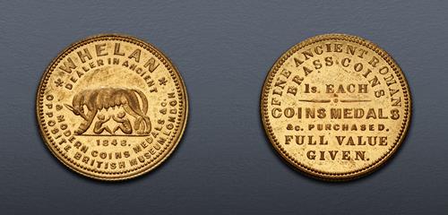 Electronic Auction 524 Lot: 959. OTHER TOKENS, London. Francis Edward Wheelan, coin dealer. Brass Advertising Token (27mm, 6.01 g, 12h). Dated 1848. UNC.