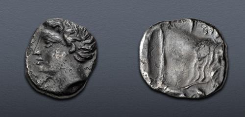 Electronic Auction 524 Lot: 150. CARIA, Mylasa. Circa 420-390 BC. AR Hemiobol (6.5mm, 0.44 g, 3h). VF.