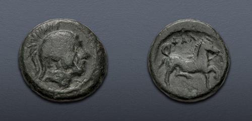 Electronic Auction 524 Lot: 35. SICILY, Syracuse. Hiketas II. 287-278 BC. Æ Litra (21.5mm, 9.66 g, 12h). Struck circa 282-278 BC. Good VF.